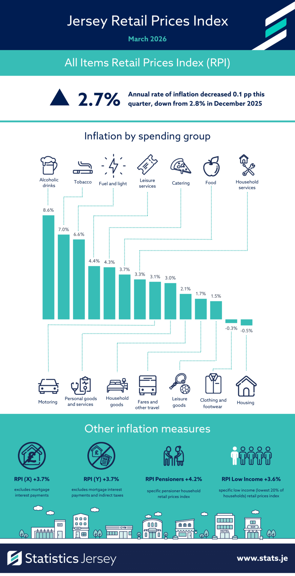 The Retail Prices Index (RPI) is the main measure of inflation in Jersey.