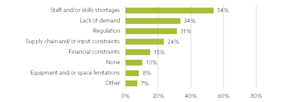 Over half of businesses (54) said staff and/or skill shortages were limiting their business.